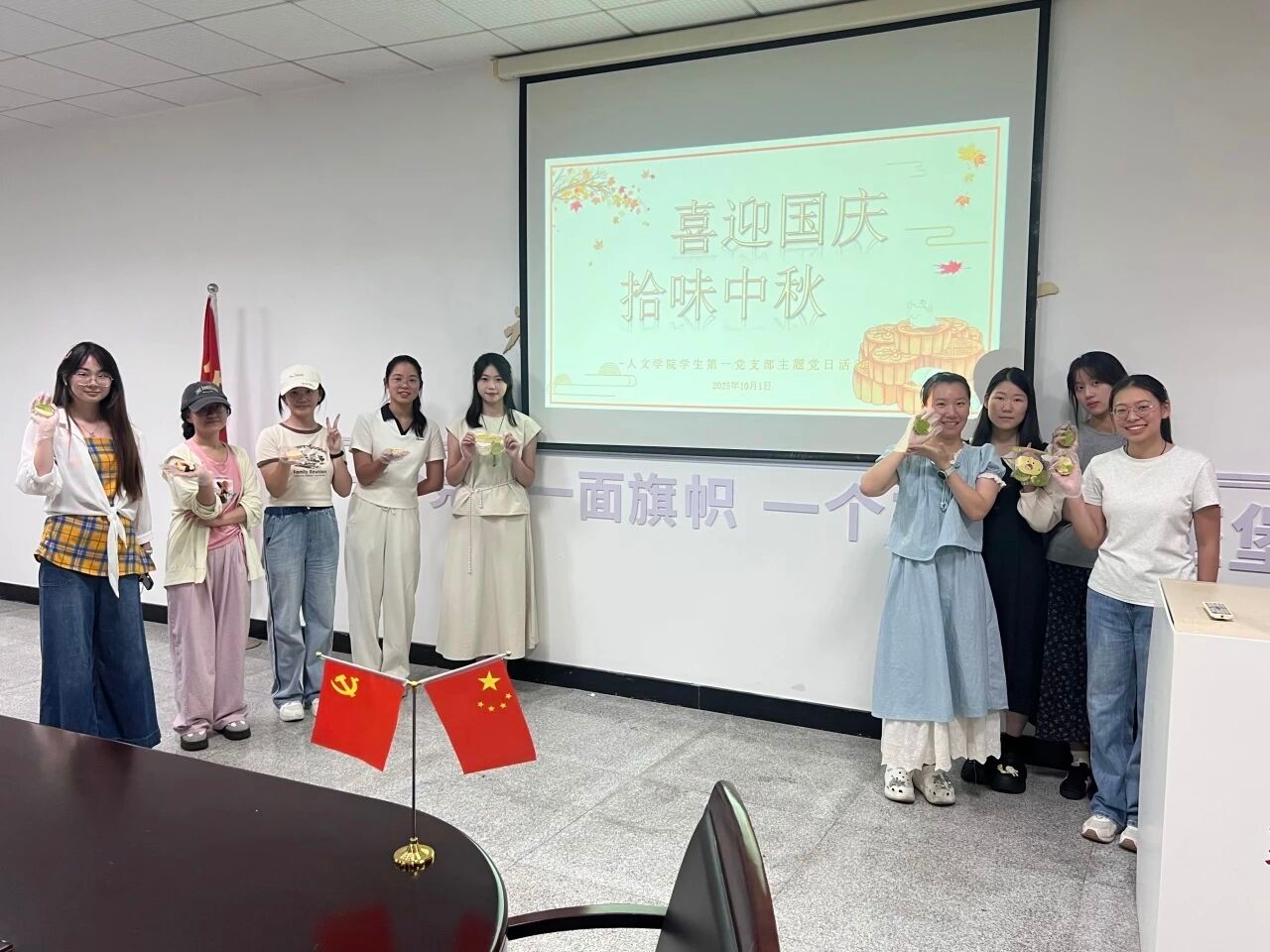 活动落幕,活动室渐归安静,空气中萦绕的淡淡月饼香与满室温情却久久不散。这个假期,麻豆视频 学生第一党支部的同志们,有人选择留校相聚,在亲手制作的月饼里品味集体的温暖;有人暂别校园返家,在亲人的陪伴中感受传统佳节的团圆。无论身在何处,大家都以各自的方式,为国庆添上了一抹清甜的中国红,也让这个双节,既有校园的青春暖意,也有归家的温馨圆满。