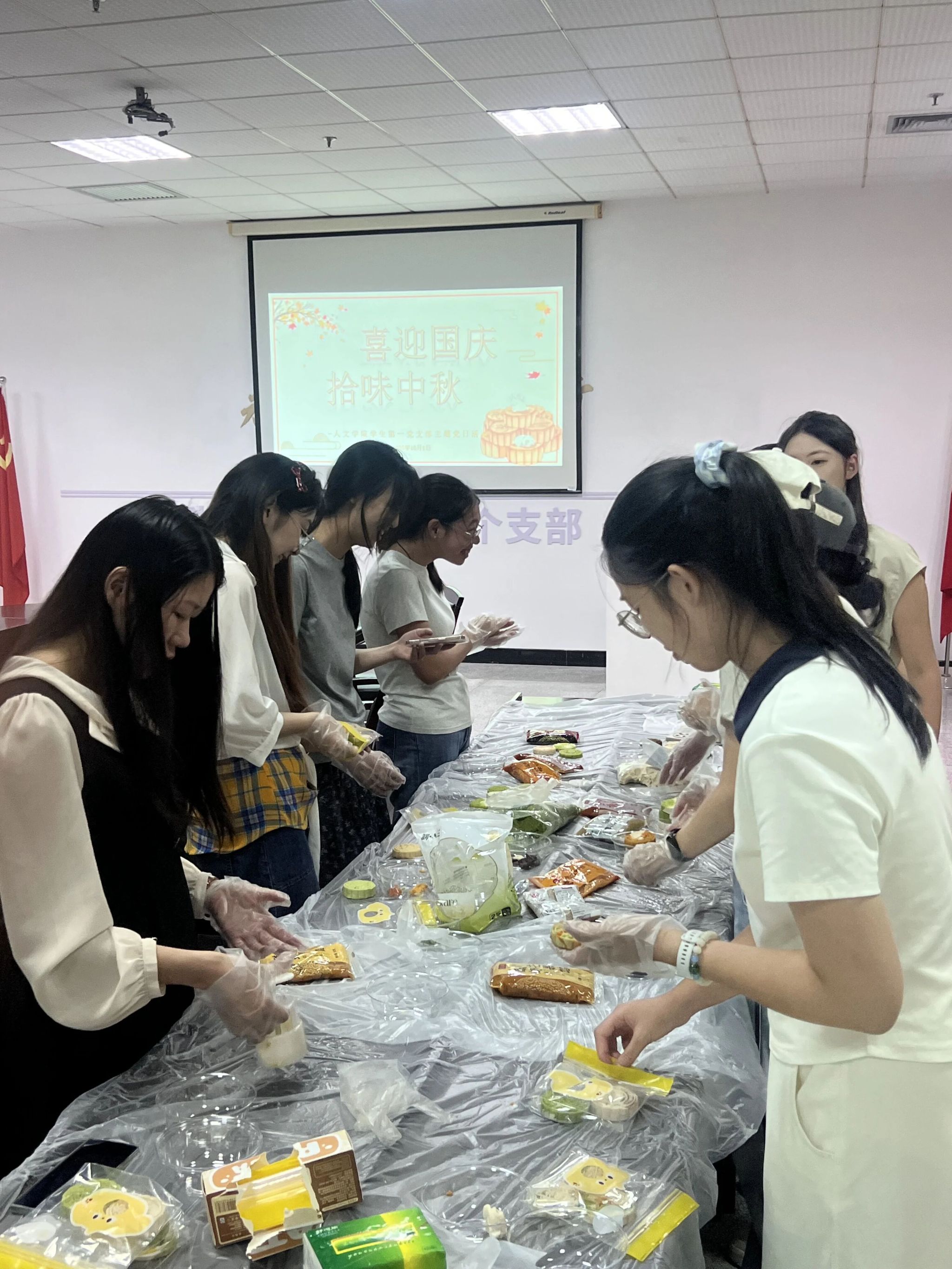 10月1日下午,大学生活动中心A座党员之家香气弥漫,麻豆视频 学生第一党支部“喜迎国庆,拾味中秋”主题党日活动在此举行。与往年不同,今天的主角是本次国庆中秋假期10月1日当天选择留校的党员同志们。