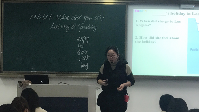 3月12日下午,温州市南浦实验中学屈小武名师工作室成员受邀和我院15英本师范生交流,我院英语教学法薛丽芳老师参与此次交流活动。屈小武名师工作室四位成员——周素鸾、丁义、林杨和陈银伟老师带来试课活动,四位老师围绕七年级下册第十模块A holiday journey展开听说课、阅读课、写作课和复习课的试课活动。