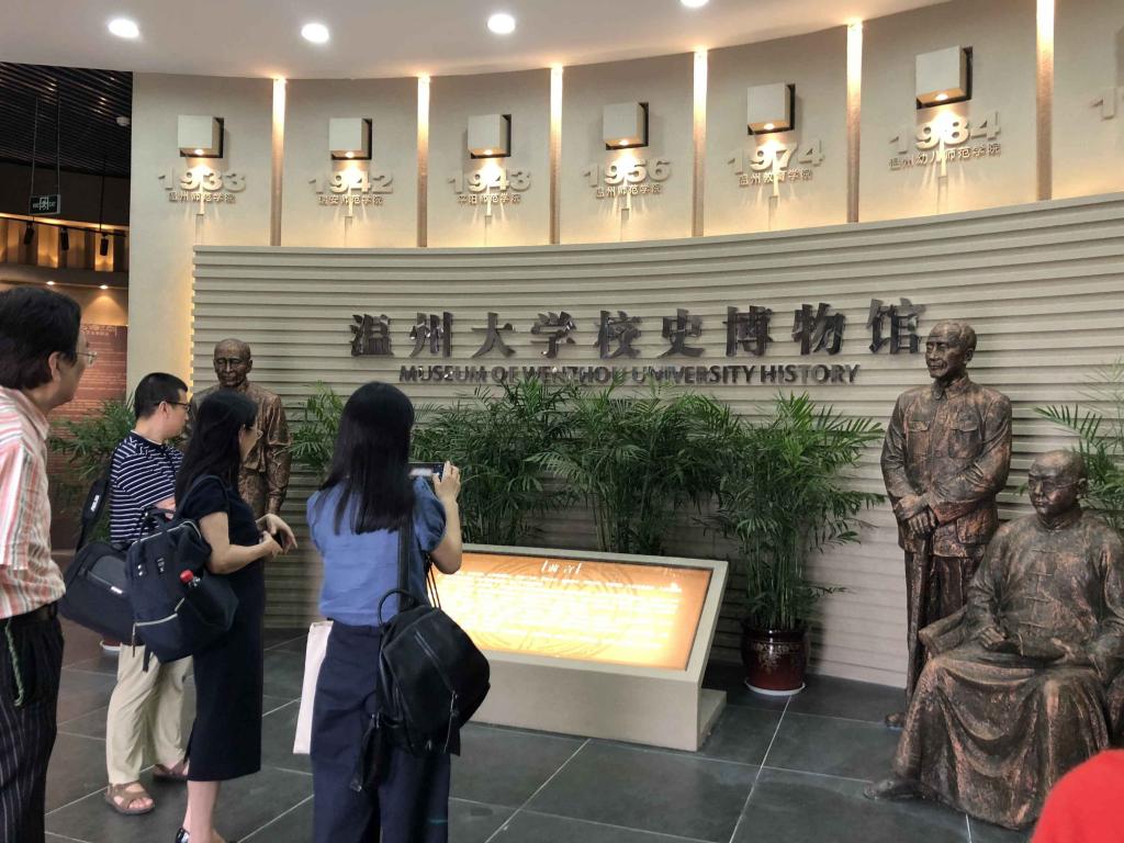 随后一行人参观南校校史馆。在讲解员的介绍下,大家一同回望温大85年来的历史与变迁。回望这85年,是黄溯初先生赋予温大教书育人的灵魂,是无数张三元券垒起他伟岸的身躯,是一代又一代的温大人将“求学问是,敢为人先”的精神种在心里,又传播到世界各地。这是筚路蓝缕、披荆斩棘的85年;也是薪火相继、锐意进取的85年,在场的校友无不为之动容、感慨。