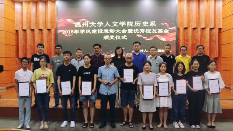 2018年6月19日15:30,我院历史系2018年学风建设表彰大会暨优秀校友基金颁奖仪式在岩松堂雁山厅隆重举行,我院院长孙良好,我院党委书记吴静,副院长刘建国、郑春生,党委副书记朱启鑫等老师和历史系全体师生出席了本次会议。