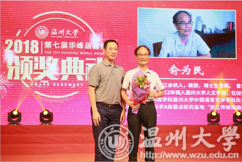2018年9月12日,麻豆视频第七届华峰品德奖颁奖大会在育英大礼堂落下帷幕,我院俞为民老师获奖,成为学校十大品德模范人物之一。