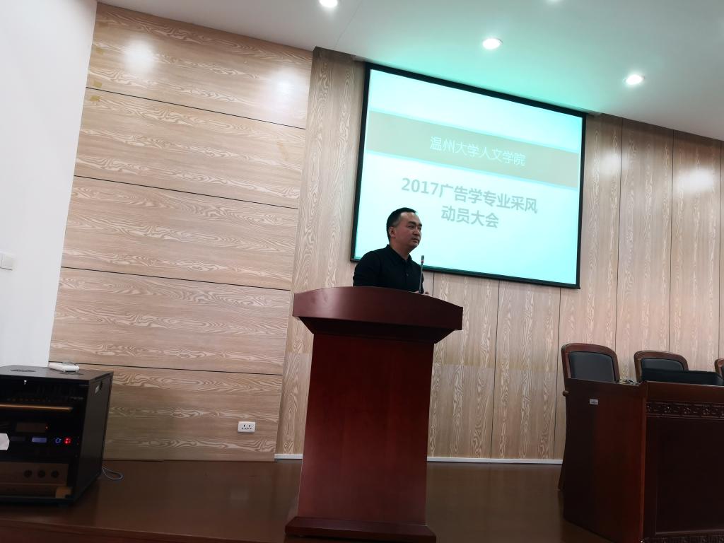 2018年10月24日13时,17广告学专业采风动员大会在人文楼203会议室准时展开。我院副院长刘建国,广告专业负责人徐卫华,专业采风带队教师颜志香、黄薏文以及17级广告学专业全体学生出席了本次活动。
