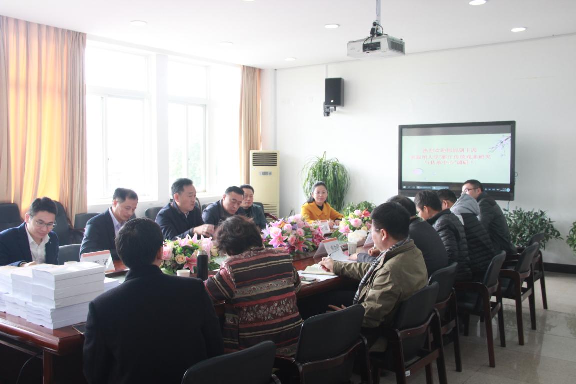 12月26日上午,浙江省社会科学界联合会党组成员、副主席邵清莅临温州大学,在薛伟和方益权两位副校长的陪同下,对浙江省哲社A类重点研究基地温州大学“浙江传统戏曲研究与传承中心”进行了调研和指导。在我院213会议室,与校领导、院领导以及中心人员举行了深入、融洽的对话。座谈会由校人文社科处处长刘玉侠教授主持,温州市社科联副主席卢达也参加了座谈会。
