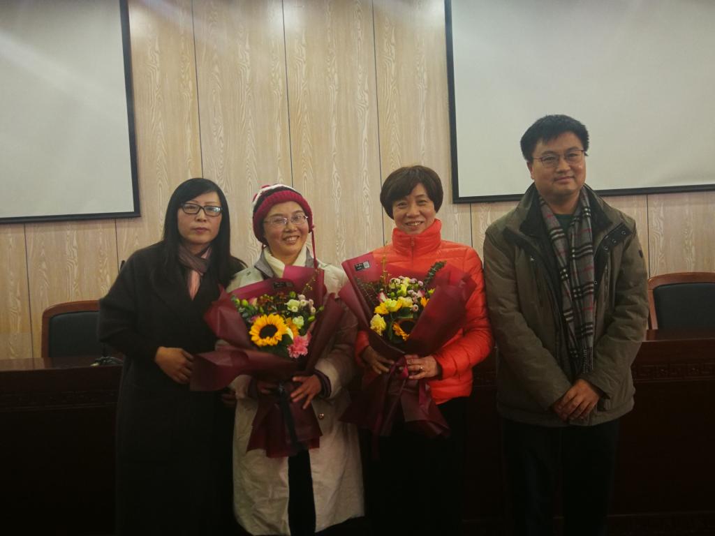 最后,学院工会为两位退休教师送上鲜花与祝福,并合影留念。