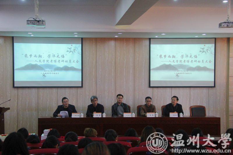 2019年3月13日下午,我院于人文楼203学术报告厅举办以“乘梦而翔,芳华无悔”为主题的考博考研动员大会。我院院长孙良好、学生处处长张敏、研究生院副院长邹超、我院副院长毛继光、我院党委副书记朱启鑫共同出席本次会议。我院有考博考研意向的同学们都积极参加本次活动,全场座无虚席。