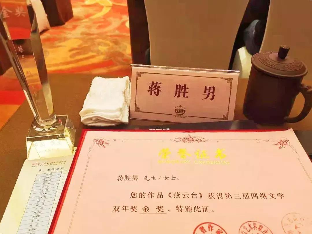 11月16日上午9:30第三届网络文学双年奖在宁波慈溪盛大举行。我院蒋胜男老师的历史小说《燕云台》喜获第三届网络文学双年奖金奖。网络文学双年奖是面向全球华语网络文学界的评奖活动,是全国乃至华语世界网络文学的权威奖项。