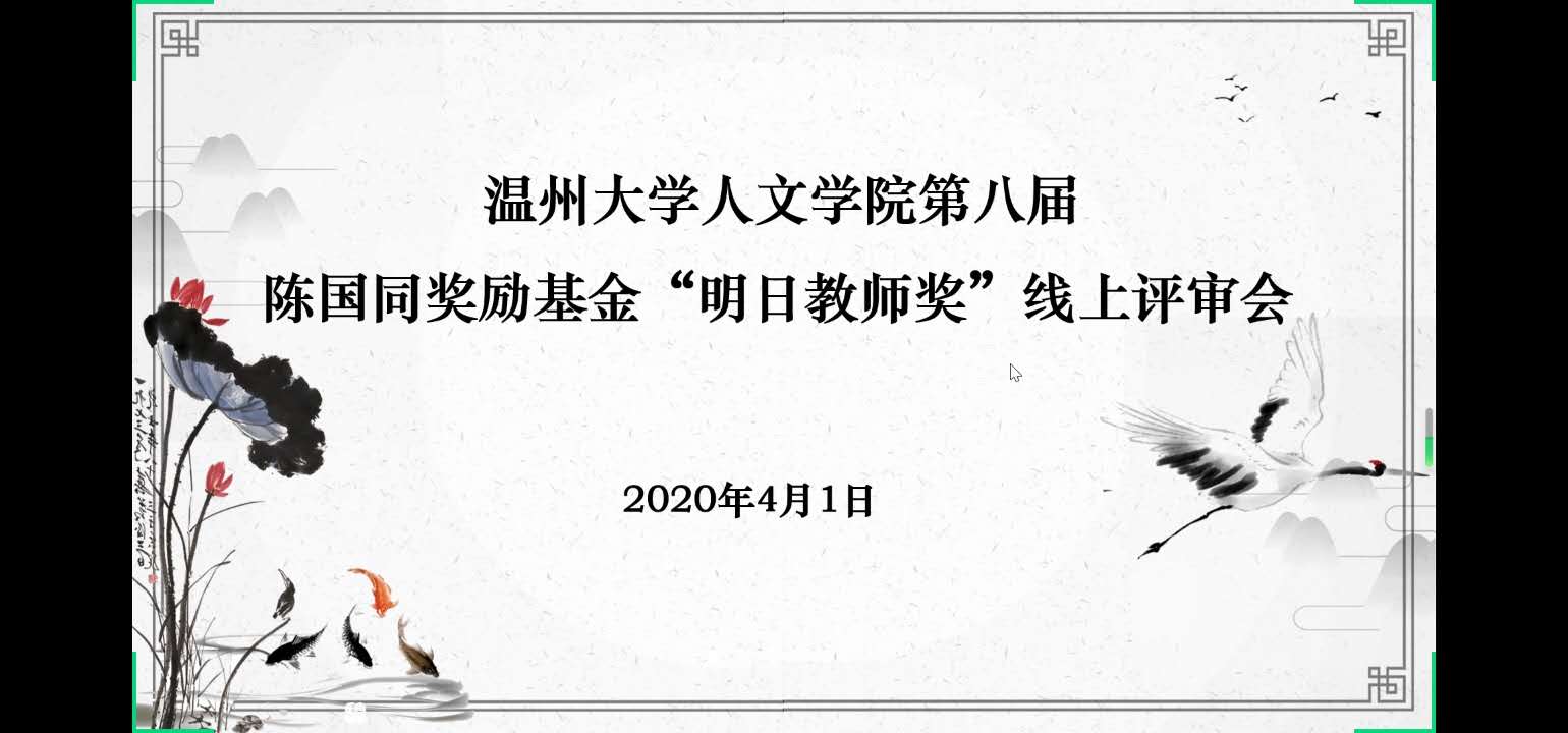 2020年4月1日14:00,根据学校通知要求,我院于腾讯会议开展了第八届陈国同奖励基金“明日教师奖”线上评审会,学院学生资助工作领导小组成员以及来自各师范班级的11位参评学生参加本次会议。