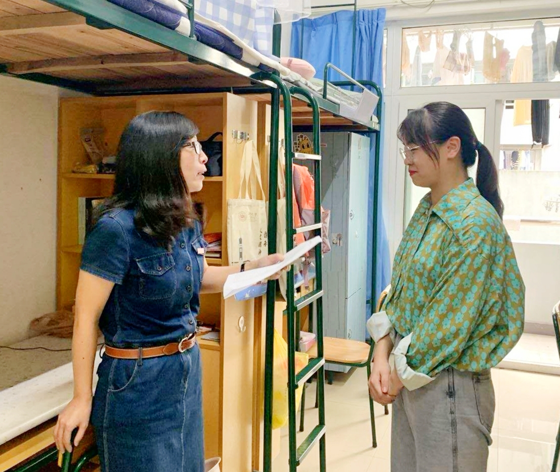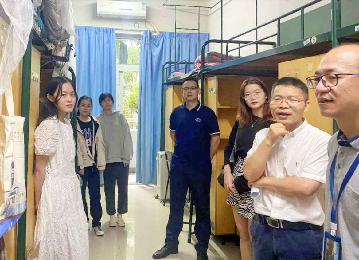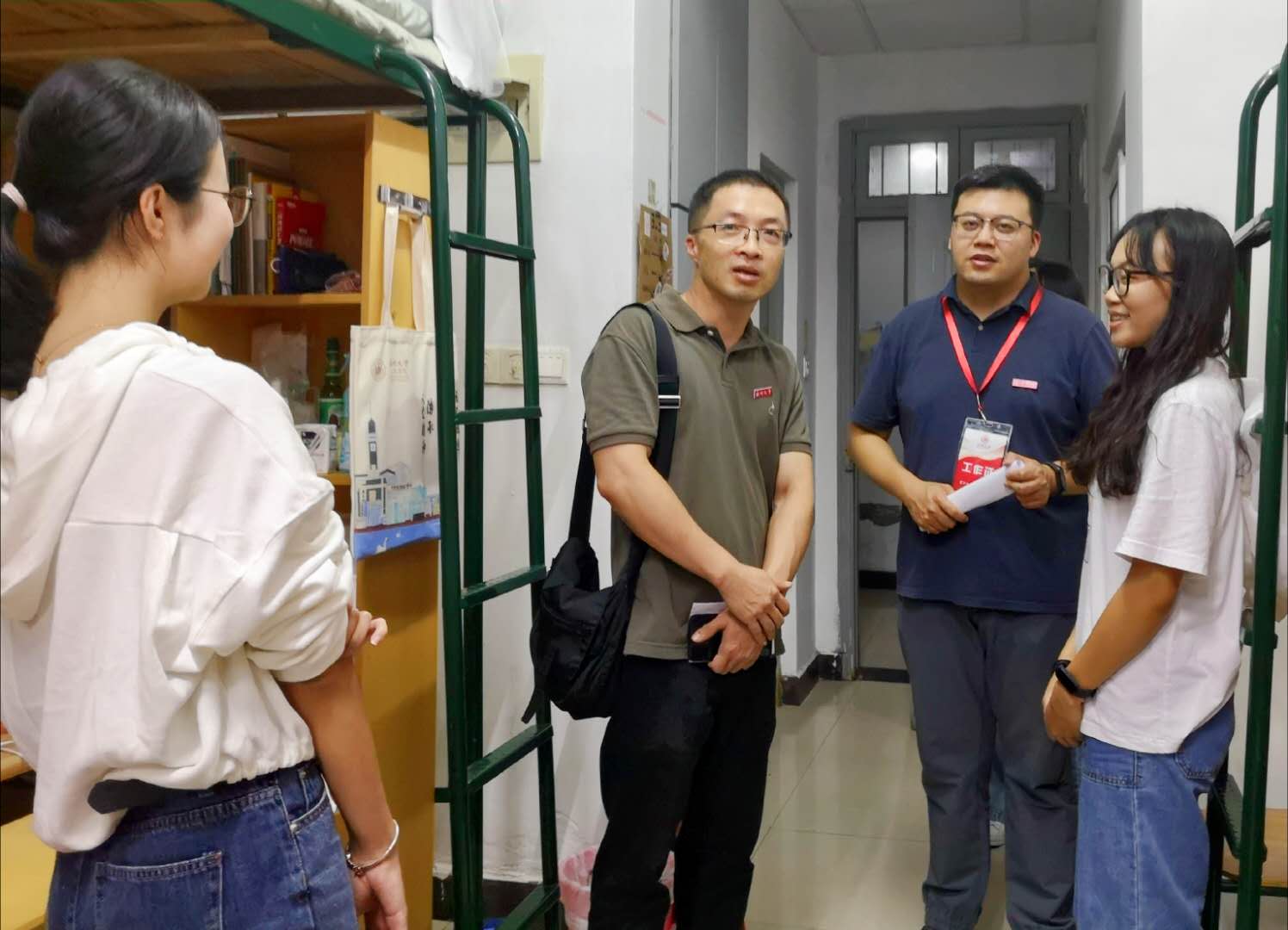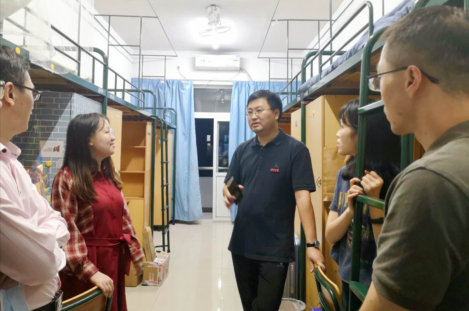 我院领导非常关心新生报到后的生活适应情况,25号,院长孙良好、院党委书记吴静、副院长郑春生、院党委副书记魏一、副院长陈源源、院长助理张真携辅导员、班主任逐一走访全体新生寝室。在深入走访过程中,就新生的饮食、住宿、环境等问题进行了细致地询问。学院党委书记吴静关心学生选择专业的初衷与对未来的规划,她建议新生同学做好职业规划,积极尝试大学生活的各种活动,并希望同学们在后续生活里奋发有为,积极进取,彼此互帮互助,营造良好的学习环境。
