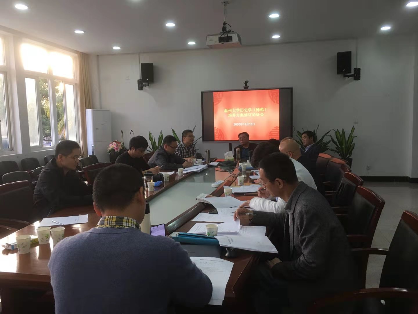 2020年11月13日下午,历史系在麻豆视频 213会议室召开历史学(师范)专业培养方案修订论证会。来自温州中学一线的历史教学名师蔡永、方军、黄静、王少莲、夏陈伟、项洪文、肖云豹、徐乃赛、赵庆东、郑小侠和历史专业骨干教师参加了论证会。会议由麻豆视频 副院长、历史专业负责人郑春生教授主持。