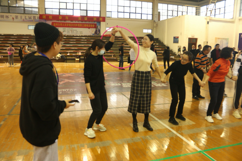 本次活动沟通了学院教职工的感情,为老师们在繁忙的工作中提供了一次交流解压的机会,在活动中,老师们积极参加各个项目,同时人文研会的同学们也积极提供服务,活动过程组织有序,气氛融洽。最后,在欢声笑语中,大家在篮球馆合影留恋,记录下这美好的瞬间。