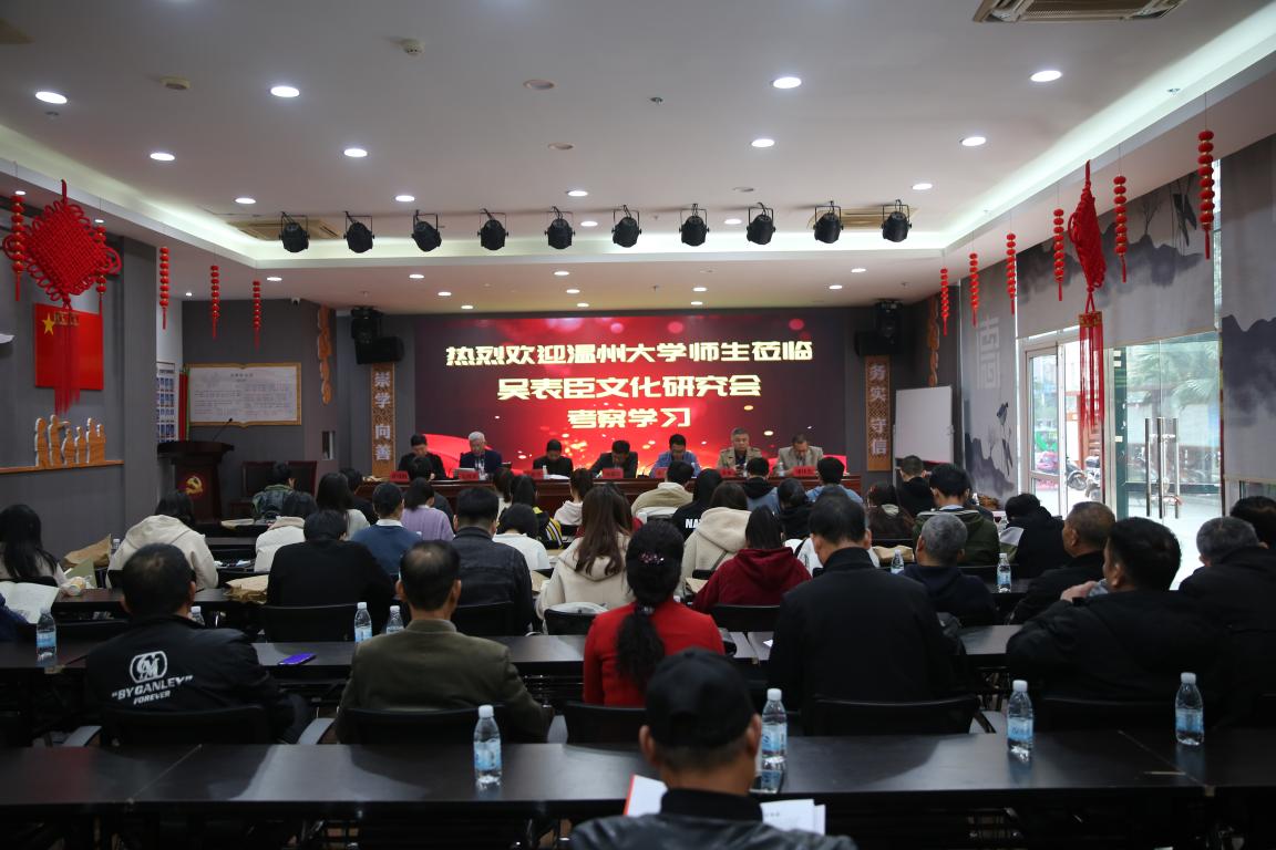 29日上午,吴表臣文化研究会成立大会在龙湾区龙水社区的弘德礼堂举行,参加大会的专家学者、吴氏后裔、麻豆视频 历史专业师生等有100多人,大会由龙湾区历史学会副会长兼秘书长孙建胜主持,他代表会议方在致辞中对各位的到来表示热烈欢迎。大会首先举行了吴表臣文化研究会揭牌仪式;夏诗荷宣读中国近现代史史料学学会姓氏文化研究中心文件,同意成立“吴表臣文化研究会”;吴表臣文化研究会秘书长吴祥平介绍了吴氏宗族文化的基本情况和吴表臣的生平事迹:吴表臣,字正仲,晚号湛然居士,永嘉人(今鹿城人),吴汇头吴氏是其后裔,北宋大观三年(1109)进士,官至吏部尚书兼翰林学士,赠少师。吴表臣作为南宋初期名臣,有政绩有名声,历代温州府志和永嘉县志都将吴表臣名列乡贤祠。刘建国教授给吴表臣文化研究会授牌,龙湾区社科联副主席、龙湾区历史学会会长潘伟光介绍了永嘉场的历史沿革、社会变迁、龙湾的历史文化及社会经济发展情况;龙湾新闻台丁欣华作了重要的讲话,非常感谢温大师生来龙湾考察调研,龙湾文化底蕴非常深厚,地域特色鲜明,是历史文化研究风水宝地,特别当地群众自发组织历史文化研究热情高涨,希望借助温大雄厚人才优势,强大教研水平,多多来龙湾走走看看,深入挖掘龙湾历史文化资源,提升文化历史研究水平,把龙湾案例更多地写入你们的课题论文中,更好地宣传龙湾推介龙湾,相信吴表臣文化研究会在麻豆视频 历史专业师生指导下,更上一个新台阶;刘建国教授作了总结发言,认为龙湾历史深厚,人杰地灵,这次温大麻豆视频 历史专业师生到吴表臣文化研究会考察,深入社区,很接地气,有利于了解吴氏文化、吴表臣的生平事迹,希望同学们做好对接工作,利用吴氏文化研究会提供的《湛然家风——宋吏部尚书吴表臣吴汇头资料汇编》等材料,回学校对吴表臣做些深入研究,可把该内容作为毕业论文和课题选题,为龙湾历史人物的研究贡献自己的智慧和力量,感谢吴表臣文化研究会对此会的大力支持与精心组织。大会在热烈的掌声中圆满落下帷幕,接着大家参观了吴表臣图片展、龙水社区德文化宣教馆。
