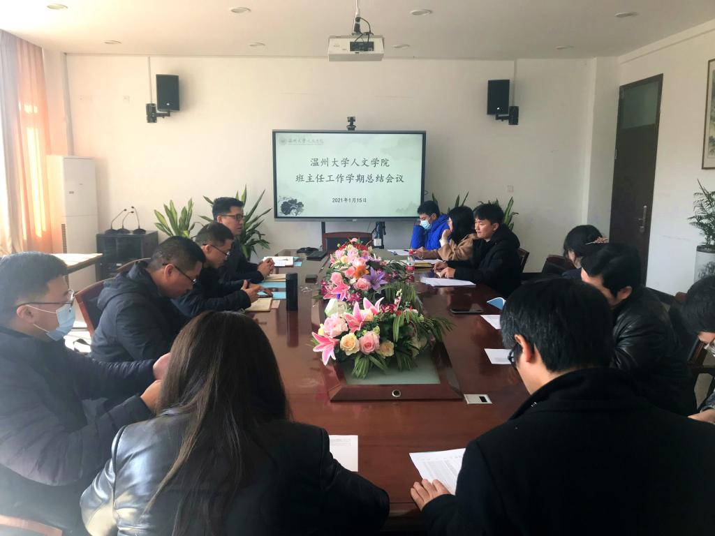1月15日14:00,我院2020-2021学年第一学期第二次全体班主任会议于人文楼213会议室举行。学院党委副书记魏一、全体班主任、全体辅导员出席本次会议。会议由学工办主任刘纪峰主持。