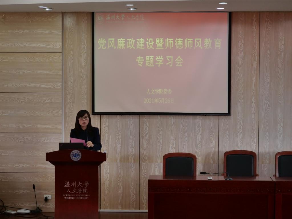 为加强党风廉政建设,树立良好师德师风,进一步规范教师职业行为,会议随后进行了党风廉政建设暨师德师风教育专题学习会。吴静书记首先传达了学校全面从严治党大会会议精神,通报了党的十八大以来国内、省内高校和麻豆视频发生的违规违纪违法典型案例,以案说纪、以案说法、以案说德,为全院教师上了一堂生动的纪律教育公开课。她还结合“清廉学院”建设方案,围绕“清明政风、清正教风、清新学风”建设目标,要求全体教师在日常教学科研工作中始终坚持 “遵守政治纪律,遵守学术规范,遵守财务规定”三项基本要求,牢固树立以清为美、以廉为荣的价值理念,齐心协力打造“清廉人文”。