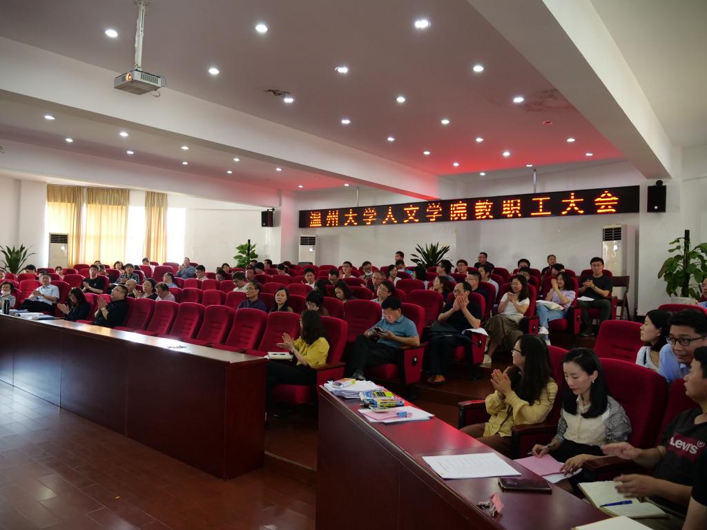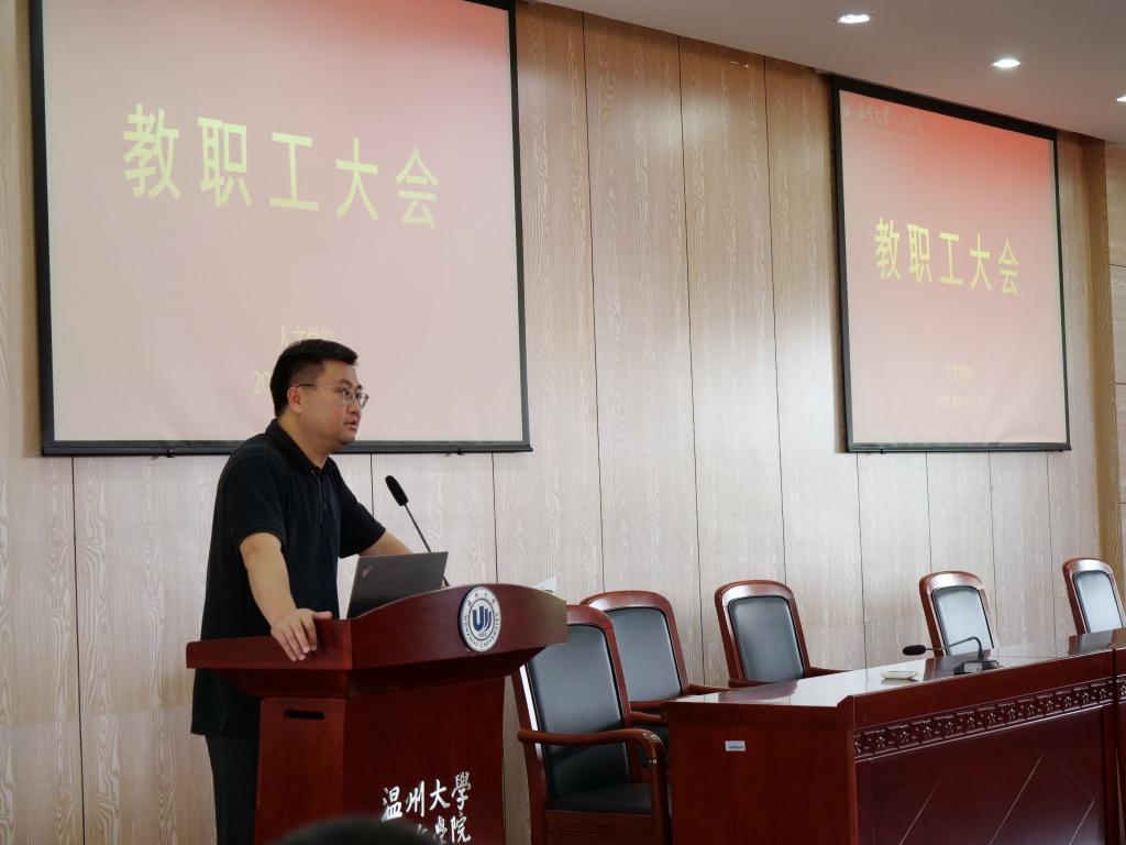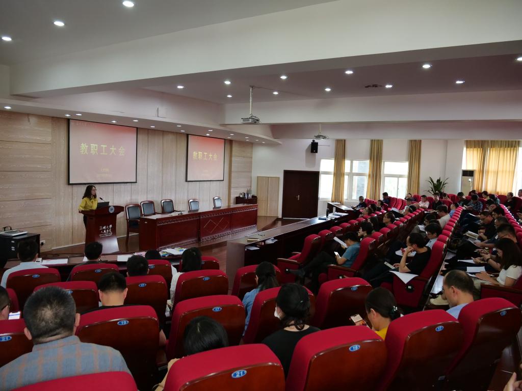 5月26日下午,我院在203报告厅召开全体教职工大会。会议由学院党委书记吴静主持。
