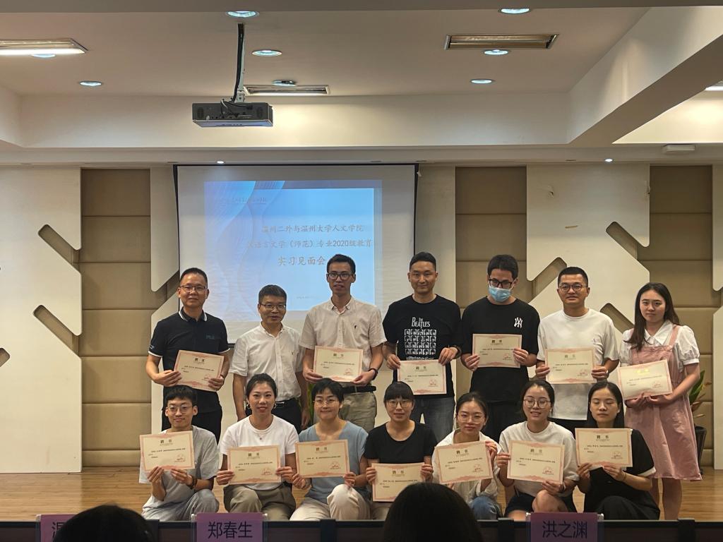随后,郑院长为温州市第二外国语学校的实习导师发放聘书并合影留念。