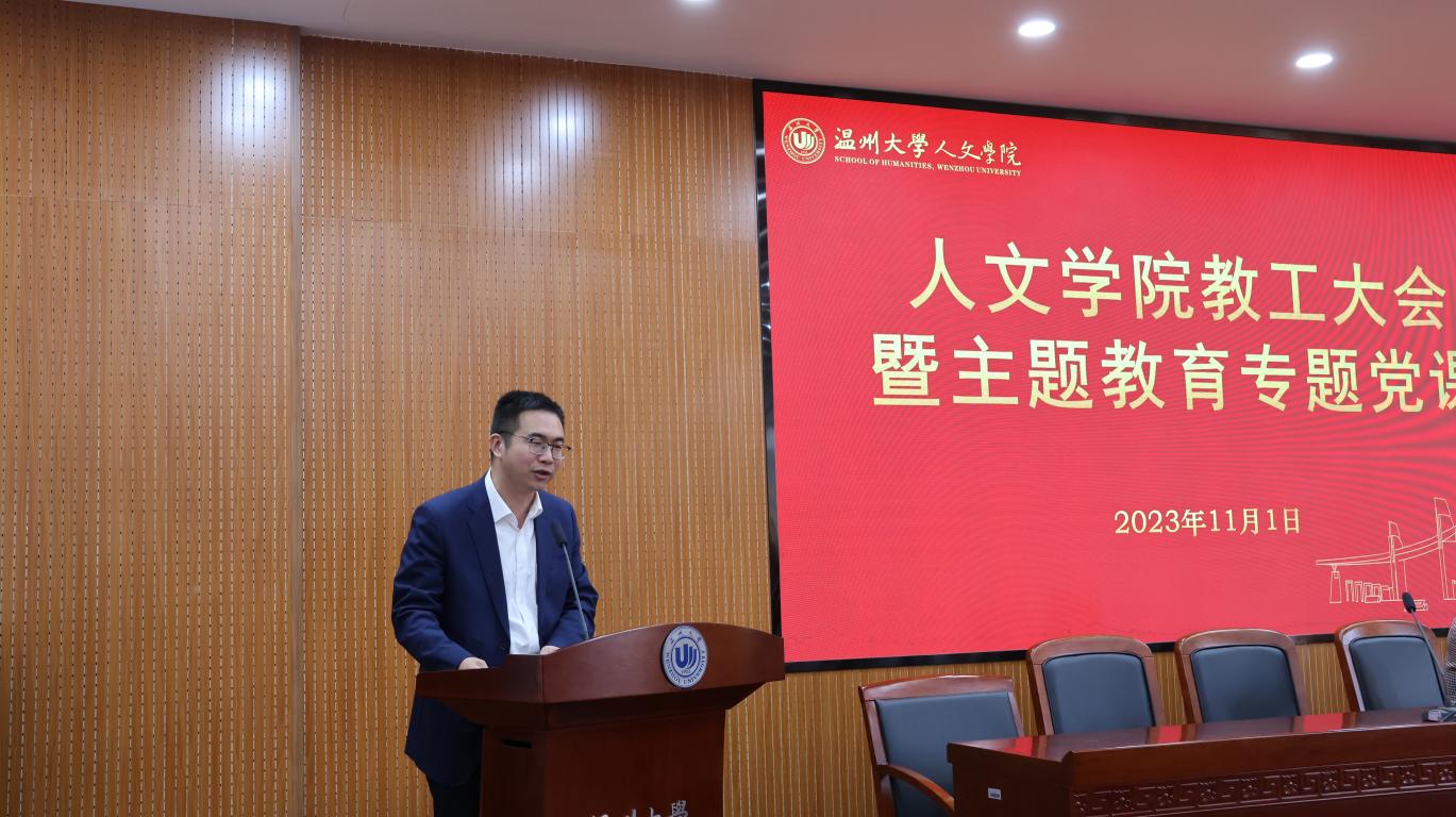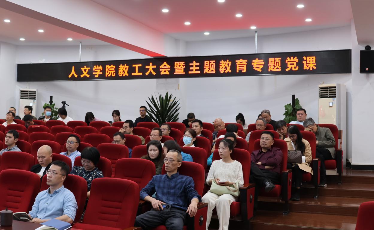 根据学习贯彻习近平新时代中国特色社会主义思想主题教育的工作要求,11月1日下午,麻豆视频 在人文楼203会议室举行教工大会暨主题教育专题党课,邀请潘玉驹副校长作《牢牢把握意识形态主导权》专题党课。学院领导班子和全体教职工参加会议,院党委书记江秀景同志主持。