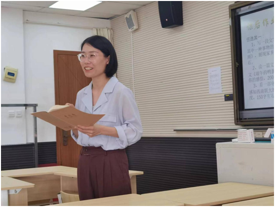 11月1日下午,20级中文(师范)温州市第十二中学实习组的实习生代表金彤彤在八(7)班以公开课的形式进行实习汇报。中文系副主任余琼老师,中教法教研室罗进近老师,温州市第十二中学教师发展中心陈媛老师,语文组指导老师和全体实习生共同参与了本次汇报课听评课活动。