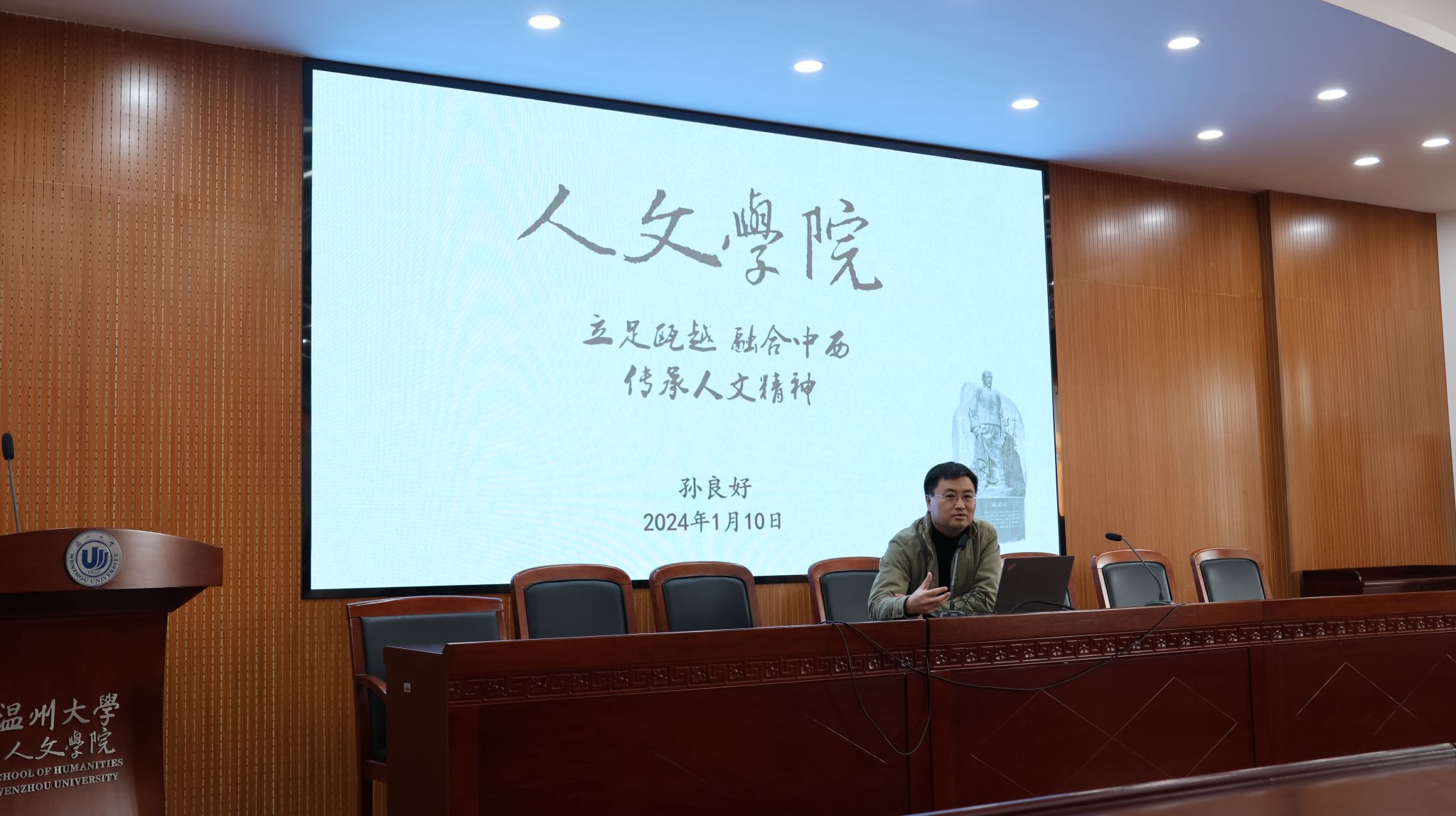 工作成效方面,孙院长围绕“师资引育”、“专业建设”、“学科科研”、“人才培养”、“社会服务”五方面详细展开介绍。师资方面继续强调人才引育并重,形成梯队合理、各有所长的人才矩阵;创建“人才之家”,优化人才服务。本年度,蒋胜男研究员获国务院特殊津贴、民革全国参政议政工作先进个人和浙江省“三八红旗手”荣誉称号,方韶毅获文化温州建设突出个人,并担任杭州亚运会火炬手。2人入选“瓯江青年社科学者”、6人获评瓯江特聘教授、2人获评“新湖青年学者”,6人获得专业技术职务晋升。专业建设方面,重视本科优势特色、完善课程建设、重视青年教师培养和校地合作,本年度历史学通过教育部师范类二级专业认证,新增1门国家一流线上课程,2门获推申报国家一流课程。学科科研方面,奖项论著四轮驱动,本年度获各级各类纵向项目20余项,省哲学社会科学优秀成果奖2项,已录入科研系统学术论文42篇,新增人文社科著作12部;学院积极承办各类学术讲座和高端会议近80场,扩大学术影响力,邀请学科顶尖专家来校参会,为申博把脉,持续推进学院申博工作。人才培养方面,校友影响力与日俱增,学生学科竞赛硕果累累,荣获大广赛、师范技能竞赛等国家级、省级一等奖十余项。社会服务方面,9支学科团队、近百名师生开展“双百双千”行动,助力地方文化建设;蒋胜男研究员出访东南亚开展文学交流,作品《芈月传》获“网络文学国际传播项目”,助力中国文化国际传播;同时,不断拓展继续教育, 麻豆视频 培训中心与两家知名教育机构达成合作,省中小学师资培训项目和委托项目成绩喜人。