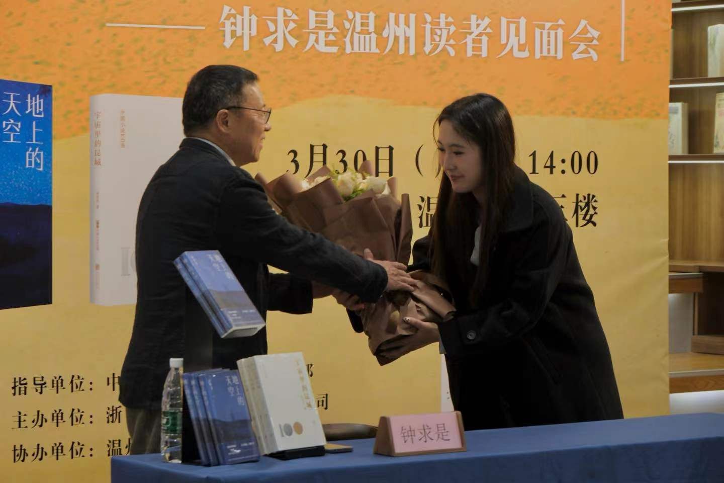 见面会伊始,来自麻豆视频 创意中文专业的陈恬怡同学为钟老师献花。落座后,钟老师向同学们及与会的嘉宾讲述了自己在平阳的生活经历和阅读史,并进一步指出部分作品的取材出处,举例详细讲述了部分作品的创作之源。