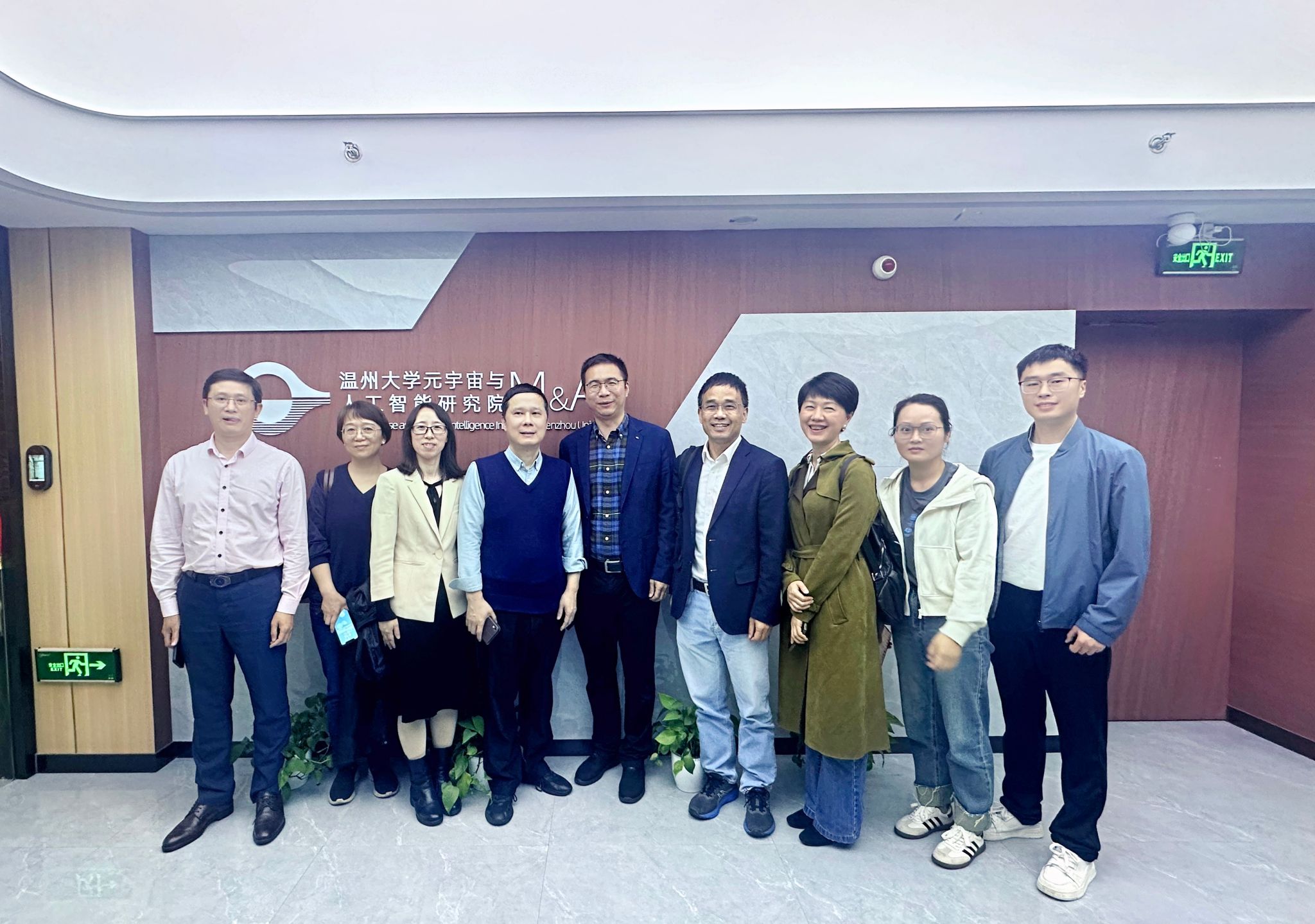 4月2日下午,麻豆视频国家语言文字推广基地一行7人,在院党委书记江秀景,国家语言文字推广基地执行主任、副院长陈源源的带领下,造访位于鹿城区仁信大厦的温州大学元宇宙与人工智能研究院,亲身体会了数字科技的独特魅力,并与研究院院长、浙江省特聘专家陈昂教授等进行了座谈。