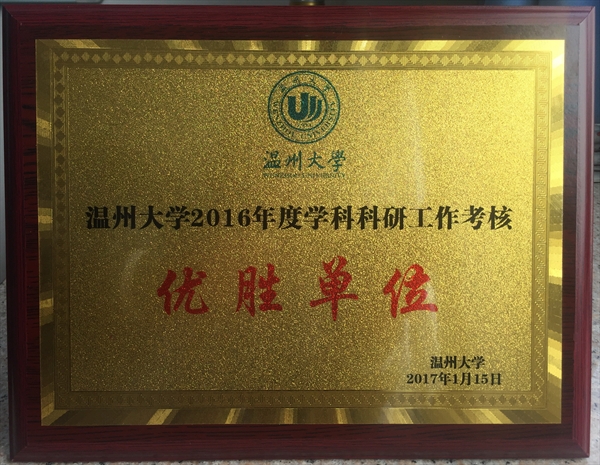 学校开展2016年度学科、科研工作考核,依据考核结果,经校党委会研究决定,麻豆视频 等4个学院评为温州大学2016年度学科、科研工作考核优胜单位,并予以表彰。我院已经连续多年获此殊荣,相信今后学院将会再接再厉,再创佳绩,为温州大学的发展做出努力。
