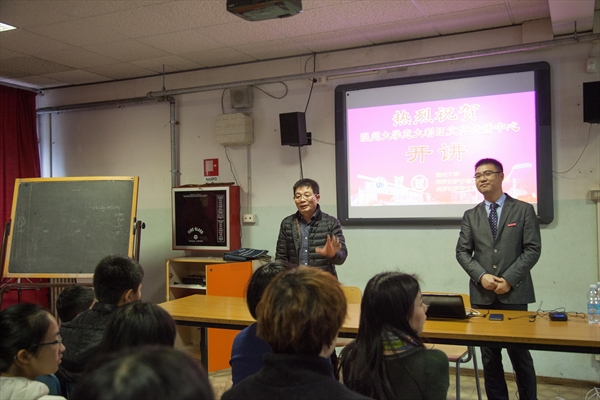 当地时间11月9日下午,我院副院长夏雨禾教授为100多名佛罗伦萨华文学校师生作了题为《“瓯”文化漫谈》的讲座,简洁生动地介绍了温州文化的渊源和“温州精神”的内涵,开启了温州大学瓯文化传播中心的海外第一课。之后佛罗伦萨各界侨领还津津有味地观看了《温州城市形象片》和《温州历史文化名城》宣传片。侨领们纷纷赞叹家乡面貌的巨变,并表示愿为温州大学的发展极尽绵薄之力。