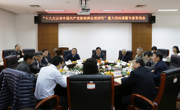 3月19日上午,“十八大以来中国共产党新闻舆论观研究”国家重大招标课题选题方案专家咨询会在南校岩松堂展示厅顺利召开。出席会议的专家有领衔选题方案设计的南京大学丁柏铨教授,以及复旦大学资深教授、志德书院院长、新闻学院童兵教授,中国新闻学会会长、中国人民大学新闻学院郑保卫教授,北京大学新闻传播学院院长陆绍阳教授、华中科技大学新闻与信息学院院长张昆教授,解放军南京政治学院军事新闻传播系主任蔡惠福教授,郑州大学新闻与传播学院董广安教授等。咨询会由副院长夏雨禾教授主持,副校长赵敏教授,校党委委员、党委宣传部部长潘玉驹教授,院长蔡贻象教授和人文社科处副处长陈宝胜副教授以及麻豆视频