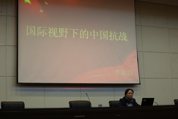 李淑娟教授是黑龙江省级领军人才梯队带头人,省级优秀中青年专家。2011年教育部新世纪优秀人才,2013年龙江学者特聘教授,国家百千万人才。李教授主要研究方向为东北乡村社会史研究和近百年黑龙江社会变迁史研究等。主持国家社会科学基金重点项目《满铁调查报告与近代东北乡村社会研究》、国家社会科学基金项目《日本殖民统治对东北农民生活影响实证研究》等多项研究课题。在讲座中,李教授以自身多年来对日据东北的研究经历为我们讲述了她个人对于抗日战争的认识。近代以来,日本对于中国的侵略野心蓄谋已久,李淑娟教授从甲午战争、日俄战争、九一八事变到七七事变等一系列侵略事实为我们深刻剖析了日本军国主义的历史根源。此外李教授通过对中国抗战在世界反法西斯战争中贡献的追忆,各国对中国抗战的高度评价,对在场师生正确认识中国抗战的国际地位有重要意义。李淑娟教授讲座的尾声部分由学生提问,李教授一一耐心做了解答。