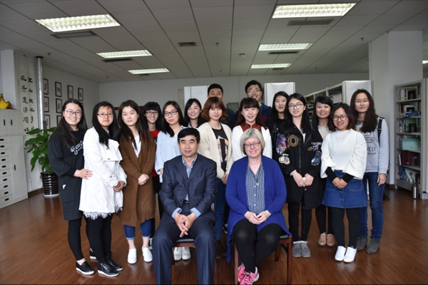 史雯教授供职于隆德大学东亚及东南亚研究中心及瑞典远东古物博物馆,主要研究方向为中国乡土文化及互联网等。近年来曾多次到浙江调研。此次是来中国参加学术会议,转道来泰顺调查并到我院进行学术交流。史雯讲座用较流利的汉语,PPT为英文。她通过图片展示新叶村的风貌,详细介绍了整个村落“遗产化”(heritagization)的过程以及相关各方发出的不同声音,并针对新媒体对新叶村的影响做了阐释。最后她归纳了五个方面的观点:一是遗产的社会化构建和演进,二是从迷信到遗产再到商业化的变化过程,三是新叶村面临人口外迁以及缺乏传承人的困境,四是当地民众自下而上有意识的传承与发扬为遗产保护提供了发展的可能,五是传统媒体和新媒体对新叶村的各方面影响。史雯对新叶村的研究强调遗产化的过程与变化,着重于文化主体的参与和感受。讲毕,黄涛教授针对在古村落保护进程中最根本的是保护建筑还是活态文化等问题与史雯教授进行了充分的学术交流。然后,史雯亲切地逐一询问在座研究生学习民俗学专业的想法和个人发展前景设想。