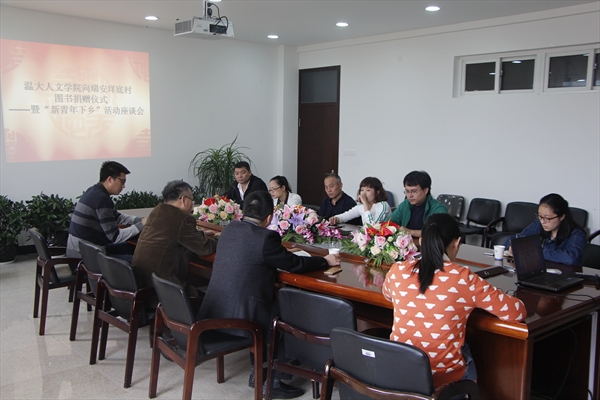 本次座谈的目的是展开新农村和高校的合作与交流。垟底村是温州乃至全国闻名的经济村,全村以工业为主导,经济发达。在日益繁荣的经济发展下,村书记等领导想将他们的环境建设和文化建设提上日程,在促进和温大麻豆视频