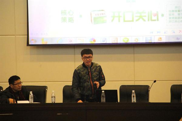 随后展示的是来自浙江大学城市学院的作品——999感冒灵品牌营销策划案《开口关心》,由何林青同学代表队员展示。他们将999品牌竞争力概括为温暖和关怀的形象,将产品的开口与人的开口结合,鼓励消费者从尝试到习惯开口关心他人,强调独立第一步从分享爱开始,整个策划案充满了人文关怀。同时,活用视频和广告歌,也与煽情的基调相得益彰。