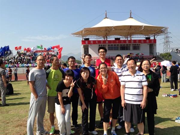 10月23日上午,温州大学第三十六届运动会在北校区田径场拉开帷幕。学校秉承“节俭办会”的原则,以简单而又整齐的仪式举行了入场式。 十月金秋,飘香丹桂。迎着温暖的朝阳,踏上红色的跑道,运动员们昂首阔步,整齐入场。一年一度的田径运动盛会是运动员们展现风采的舞台。在本届运动会上,我院共有25名教工参加10项个人比赛项目和4项集体比赛,其中蒋述老师、曾蓓蕾老师分别获得了800米第二名、女子个人铅球第4名的好成绩,魏成春老师获得50米持物跑第5名;男子中长跑较去年有所突破,夏诗荷老师、杨东永老师参加3000米、5000米长跑项目,获得了第6名的名次。