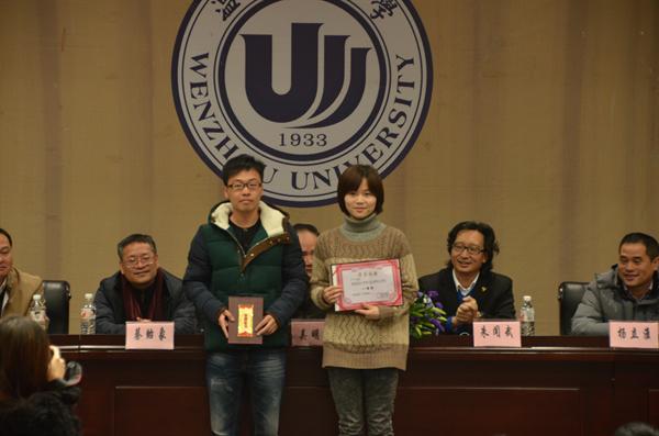 我院沃丽丽同学获得本次白晖华文学奖一等奖。她与众多的获奖同学一样,表示白晖华文学奖给了他们一个文学创作的舞台,更是带动全校学生对于文学的热情。最后,颁奖嘉宾和各位获奖者在在门口“生生不息”前合影留念,第六届白晖华文学奖圆满落幕。