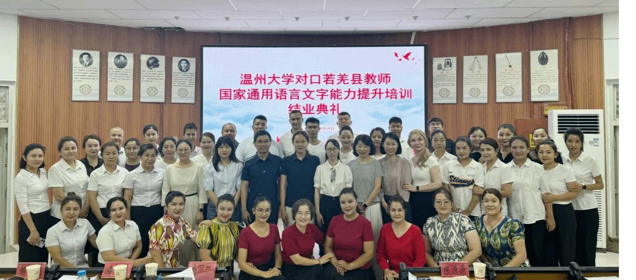 2025年8月19日,国家语言文字推广基地(温州大学)对口新疆若羌县教师国家通用语言文字能力提升培训班举行结业典礼。当日,若羌县久旱逢甘霖,下了一场大雨。教科局党组副书记、局长马丽红说,温州大学带来的培训,正是一场“及时雨”。