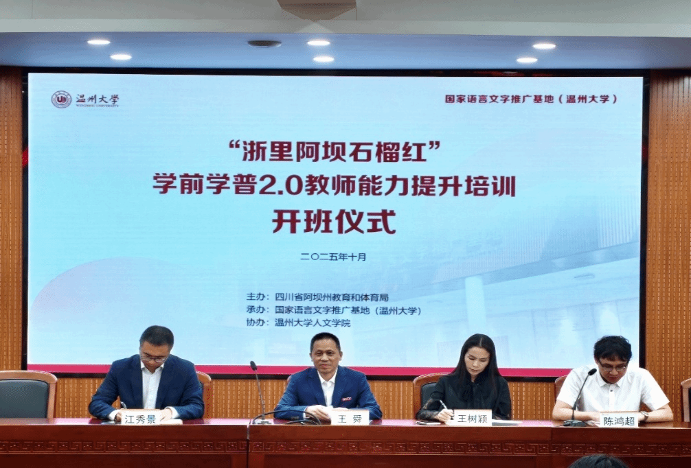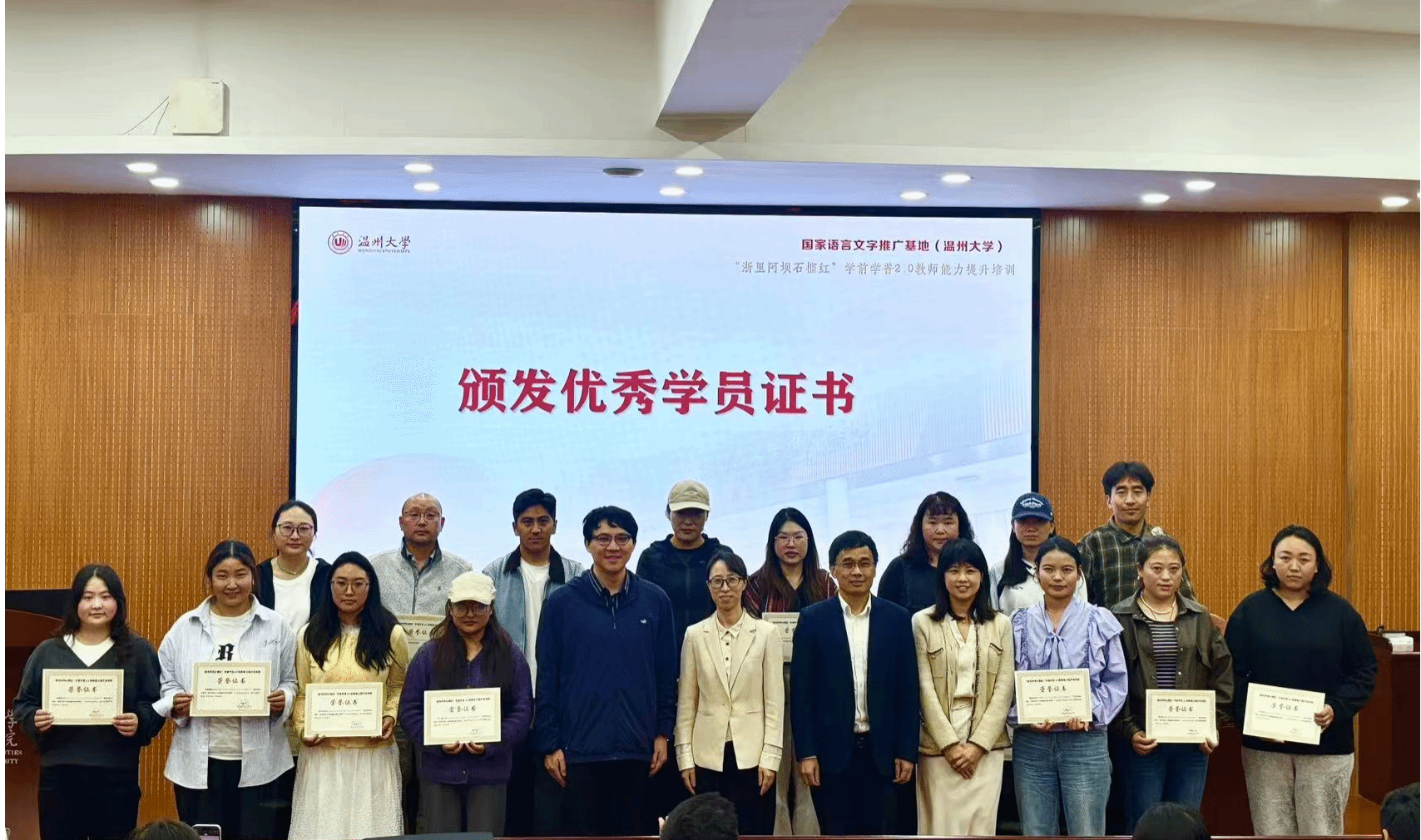 2025年10月21日至28日,由四川省阿坝州教育和体育局主办、国家语言文字推广基地(温州大学)承办、麻豆视频 协办的“浙里阿坝石榴红”学前学普2.0教师能力提升培训项目在温州大学成功举行,来自四川省阿坝州8个县(市)的100名藏、汉、羌、彝和土家族老师参加学习。