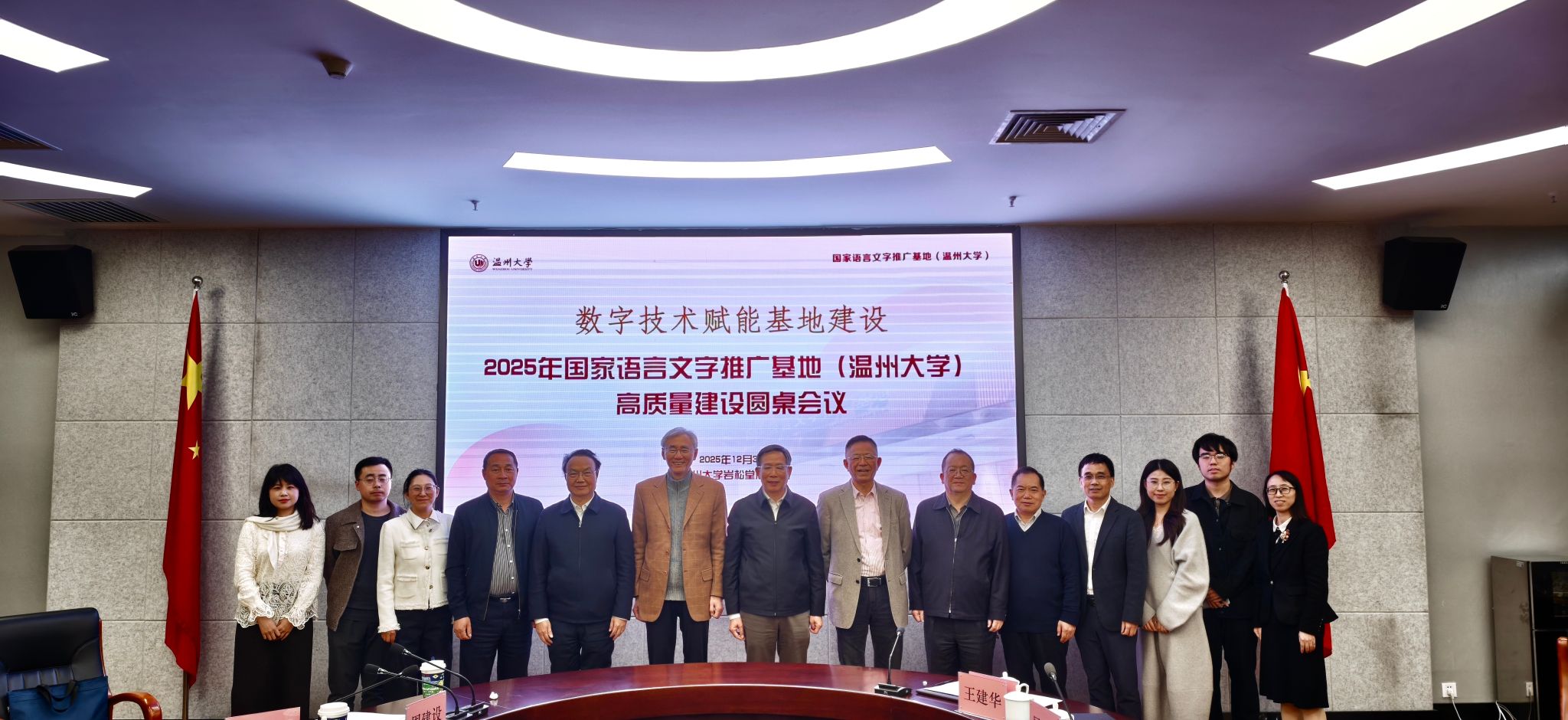 2025年12月3日,国家语言文字推广基地(温州大学)高质量建设圆桌会议在温州大学岩松堂展示厅举行。会议聚焦“数字技术赋能基地建设”,深入研讨智能时代的语言学研究、高质量语料库建设及数字技术服务国家通用语言文字推广普及等核心议题,旨在推动数字技术与语言文字事业深度融合,促进基地高质量发展。