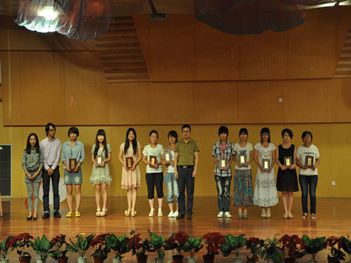 个人风采展示过后,进行了"百年语文"之"微书情"颁奖典礼。这个活动是前期在微博和人人上举办的,参赛者通过微博和人人发表字数在50字以内的微情书表达自己的情感,最后由专业的老师进行审核评定,评出10封优秀的情书。最后,麻豆视频