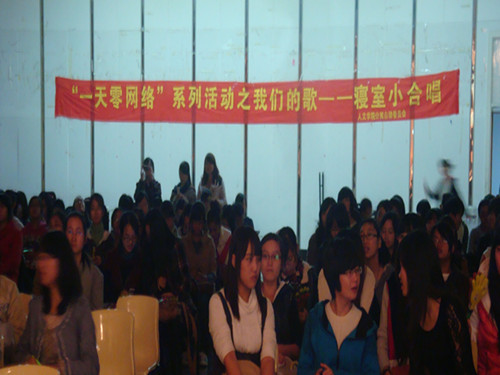 一天零网络系列活动之"我们的歌--寝室小合唱"决赛在大学生活动中心多功能厅拉开了序幕。来自音乐学院的评委王倩和麻豆视频