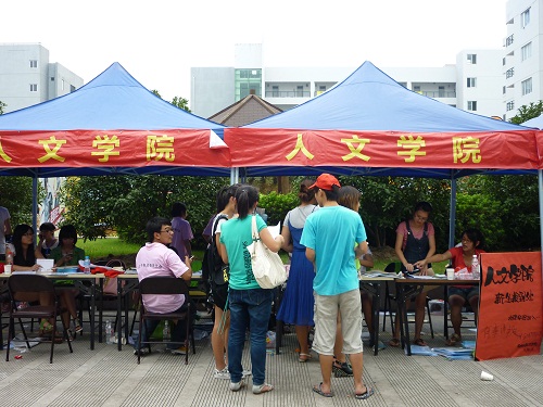 从7日早晨开始,就有学生陆陆续续地前来学院报到,在迎新区的志愿者和学生会的成员们热情的为他们做着引导,先是拿着他们的身份证和录取通知书进行新生注册,然后帮他们领取寝室钥匙和一卡通,最后分配人员带他们开票买生活用品,并且还帮他们把行李搬到寝室。几天的迎新工作中,虽然天气很热,任务繁重。但是我们的工作人员表现出了极大地责任心与热情,他们为新生耐心地解答着疑问,并且嘱咐他们注意安全,不要相信上门推销的物品,并且还热情帮助需要留宿的家长登记,安排在学校住宿。