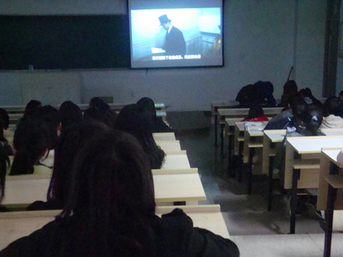 团委学生会心理部在北校人文楼201教室进行周末影片放映。本次播放的影片是由英国著名导汤姆•霍伯指导的《国王的演讲》。