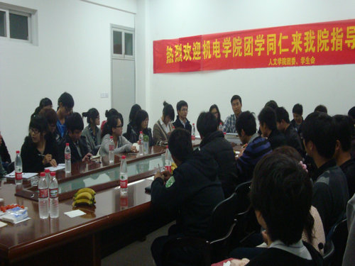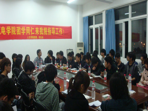 和机电学院团委学生会的工作交流会。两个学院各个部门的部长及干事出席了此次交流会。