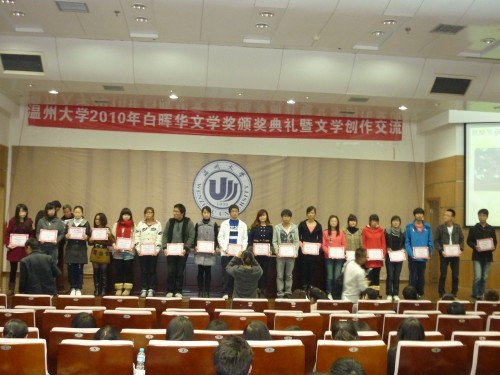 团委、学生会承办。出席本次活动的嘉宾有白晖华文学奖赞助人、著名作家吴明华先生,温州大学副校长叶世祥教授,白晖华文学奖理事会执行理事、温州日报文体部主任朱闻武先生、麻豆视频