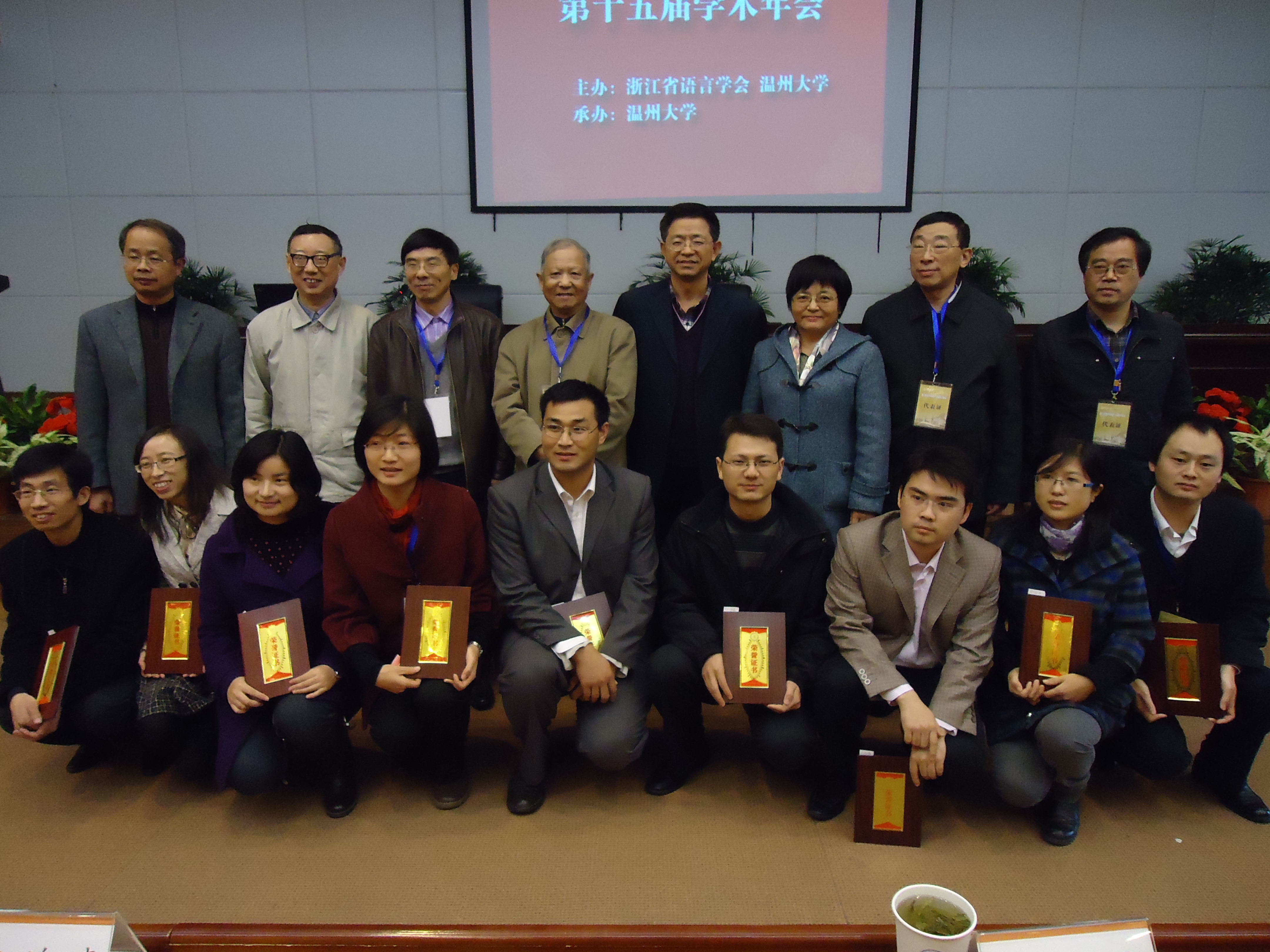 12月11日本届浙江省语言学会年会在温州大学育英图书馆报告厅落下帷幕。在闭幕式上,各讨论小组的代表分别就本小组的讨论情况作总结性发言,随后四位获奖代表就自己的获奖论文作报告。鲁国尧、祝鸿熹、张涌泉、王建华等先生分别为获奖者颁奖,会议气氛达到高潮。本次会议参加人数创非选举年届之最高,年轻力量的加入,为学会注入了新的血液,体现了年会欣欣向荣的面貌。