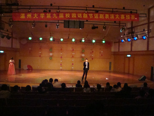 预赛分为上午和下午两场进行,共有来自温州大学各个学院和农历剧社的26个参赛剧目。每组限定表演时间为15分钟,并由评委现场打分。同学们精湛的演技和优秀的创意无不引来台下观众阵阵热烈的掌声。经过一天激烈的比拼,评委们本着公平公正的原则进行认真评审,共有《雷雨》、《绝恋》等6个参赛作品入围决赛。