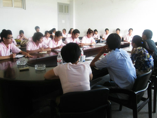 在交流会上,院领导与团委学生会成员们相互交流,气氛显得十分热闹。院党总支副书记骆锤炼首先对各学生干部的辛勤工作给予表扬,并呼吁同学们做好学习与工作时间的分配,争取双赢。针对建立“学习型党组织”的目标,骆书记向同学们提出了“创新争优”的口号,鼓励团委学生会成员主动献计献策。会上,院领导与团委学生会成员还讨论了近期校园及国内外大事。