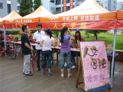 团委、学生会部分成员以及人文热心志愿者在C区早早等候10级新生的到来,为他们提供最周到的服务。
