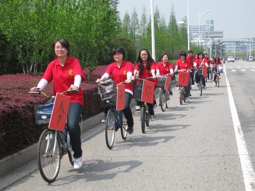 活动开始后,大家骑着贴上活动口号的自行车,途径温医、商务中心、南校、温职、北校,绕着大学城宣传了一周,引来了路上同学们的广泛关注。宣传过后,学生党员们在北校区1号楼213会议室进行座谈,主要针对现实生活中的“低碳现象”进行讨论。座谈会上,同学们罗列了各种体现“低碳”的生活习惯,各抒己见,并作出新的设想,气氛十分融洽。