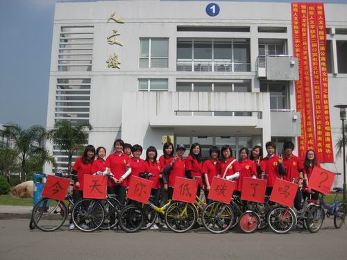 4月9日下午一点半,我院学生党支部07广告本的党员、预备党员们打出了“今天你低碳了吗”的响亮口号,从生活区C区出发,在大学城组织了一次宣传活动,旨在响应两会“倡导低碳生活”的号召。活动得到了我院07级学生党支部书记曾蓓蕾老师的充分肯定。