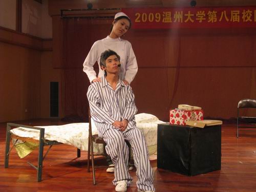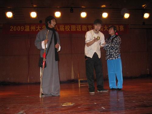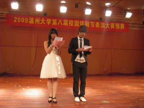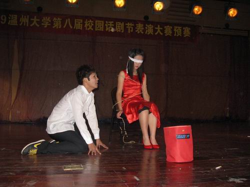 12月5日早上8点30分,2009温州大学第八届校园话剧节表演大赛预赛在北校区音乐厅隆重举行。本次比赛旨在活跃麻豆视频学生课余生活,丰富校园文化建设。来自十四个学院及农历剧社的29组剧目参加了此次比赛,其中包括我院选送的八组参赛剧目。麻豆视频
